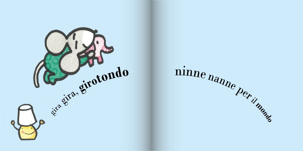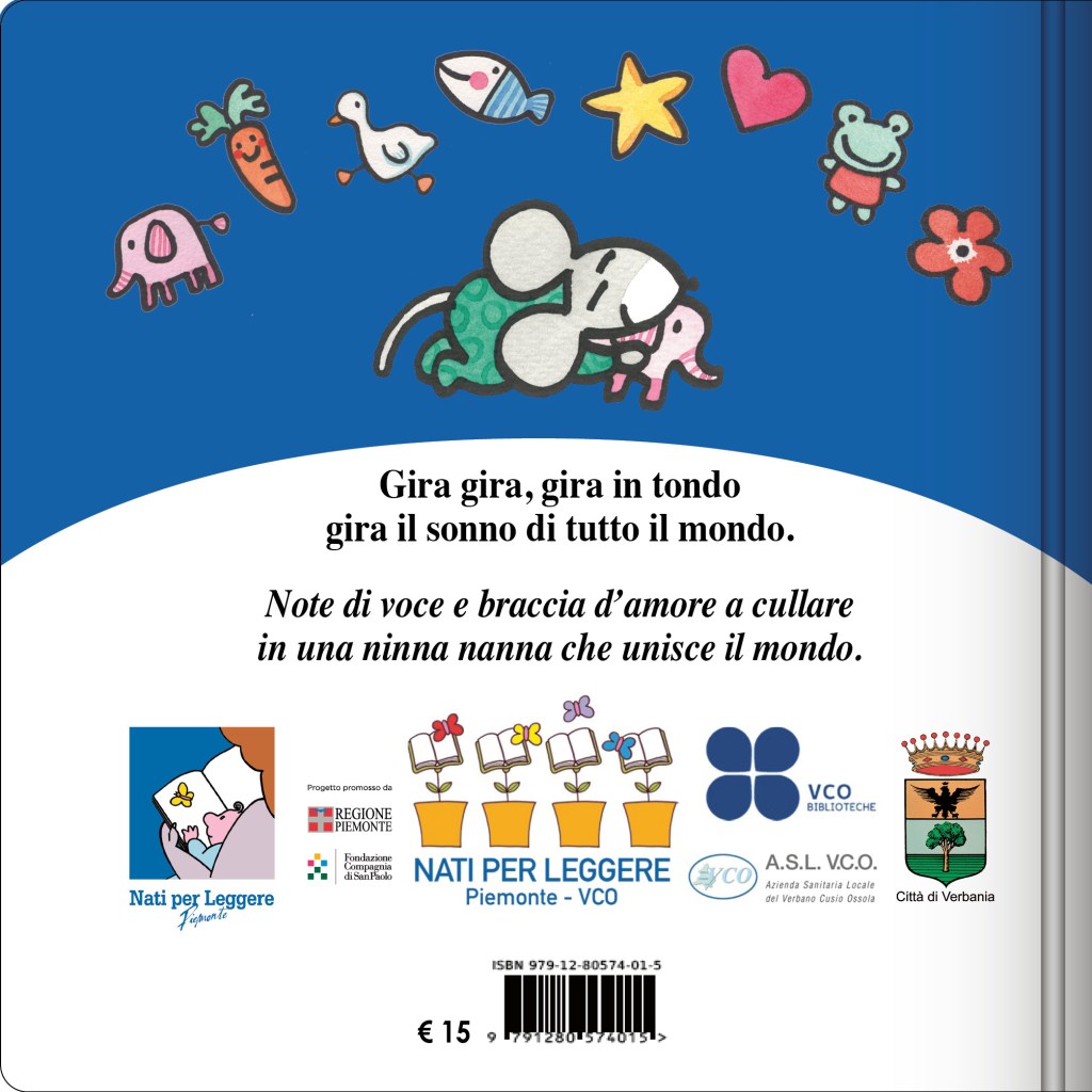 Gira Giramondo nasce come playlist del canale youtube Nati per Leggere Verbano Cusio Ossola e ha accompagnato le famiglie durante le lunghe giornate del primo lockdown dovuto all’emergenza sanitaria da Covid-19. Sono state raccolte voci che cantano ninne nanne tradizionali e filastrocche da tutto il mondo, donate dai volontari lettori e amici del progetto Nati per Leggere Piemonte VCO, e si sono fuse con le illustrazioni di Elettra Riolo dando origine a brevi animazioni musicali. Diventa ora anche un albo illustrato in cui testo e illustrazioni sono il filo rosso di unione di tutte le famiglie.