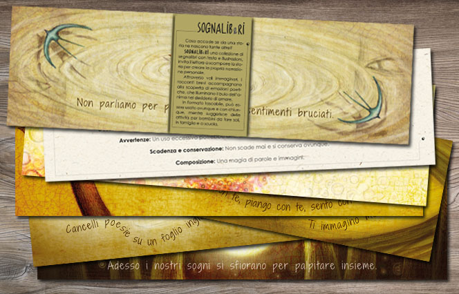 Un albo illustrato non rilegato, si presenta in un formato particolare come una collezione di segnalibri con testo e illustrazioni e invita il lettore a scomporre la storia per creare la propria narrazione personale. Può essere usato ovunque e con chiunque, mentre suggerisce delle attività per bambini da fare soli, in famiglia e a scuola. Le pagine possono essere lette nella loro sequenza oppure si mescolano, si distribuiscono a caso, si leggono e si ripete l’operazione più volte per continuare a sognare